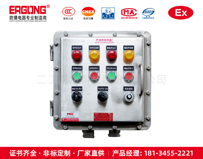 二工防爆擁有專業(yè)的設(shè)計(jì)技術(shù)團(tuán)隊(duì),高效防爆電器,誕生于 康富斯—且對產(chǎn)品進(jìn)行全過程、全性能檢查,待產(chǎn)品被確認(rèn)合格后才裝 箱發(fā)貨—且生產(chǎn)各部門品質(zhì)意識強(qiáng),效率高